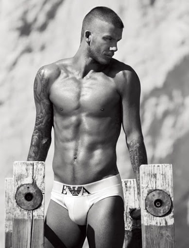 In the Armani underwear ad, we have David Beckham. His muscles are tensed, his eyes narrowed, and his mouth rigid. His facial expression exerts anger and intensity. The tattoos on his arms emphasize his warrior position. Again, the eyes are turned away from the camera. The image is shown objectively even when the only clothing is underwear. Strength and aggression, again, are the illustrators of man.